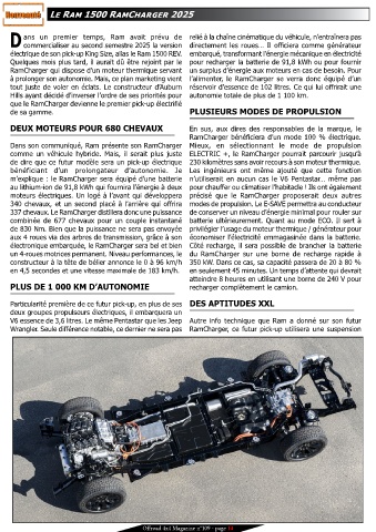 comme un véhicule hybride. Mais, il serait plus juste ELECTRIC +, le RamCharger pourrait parcourir jusqu’à