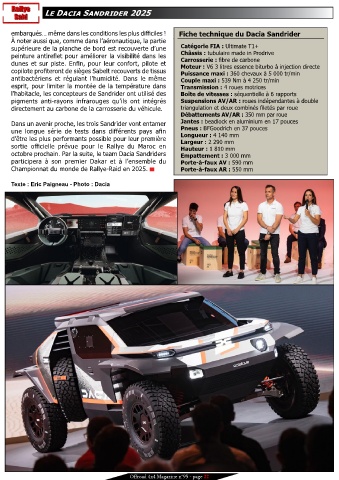 octobre prochain. Par la suite, le team Dacia Sandriders empattement : 3 000 mm
