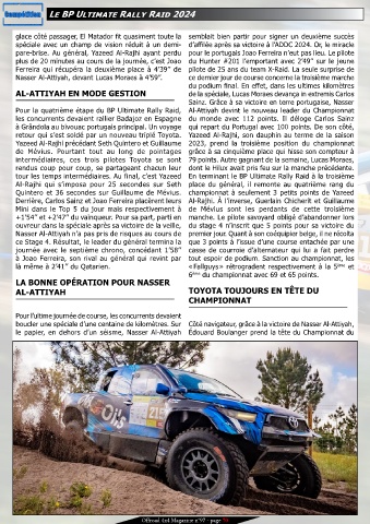 retour qui s’est soldé par un nouveau triplé Toyota. Yazeed Al-Rajhi, son dauphin au terme de la saison