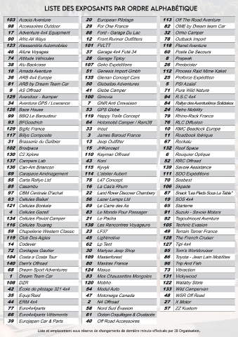 35 Equip'Raid 47 Motoneige Canada 48 WSR Off Road 44 ERM 4x4 91 Suzuki - Savoie Motors 138 Les Rencontres Voyageurs